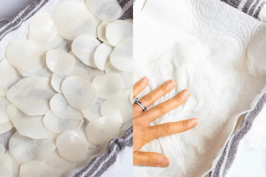Drain and rinse the slices, then dry them thoroughly using a clean kitchen towel or paper towels. Removing moisture is essential to avoid oil splatter and soggy chips.